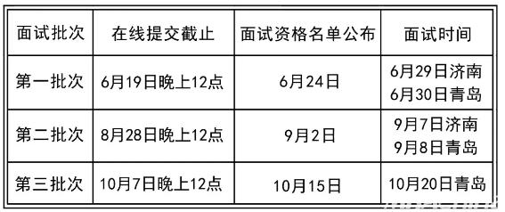 2019年5月21日-2019年10月7日晚上12點(根據(jù)報名先后安排面試批次)